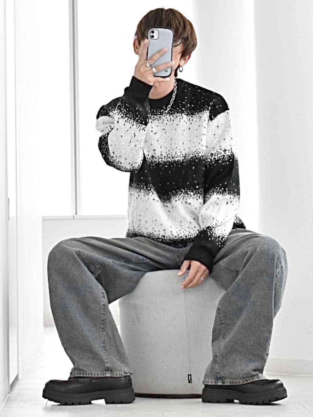 y_Oのニット/セーター「【Re730】モヘアタッチ/総柄ジャガード オーバーサイズ ルーズセーター」を使ったコーディネート