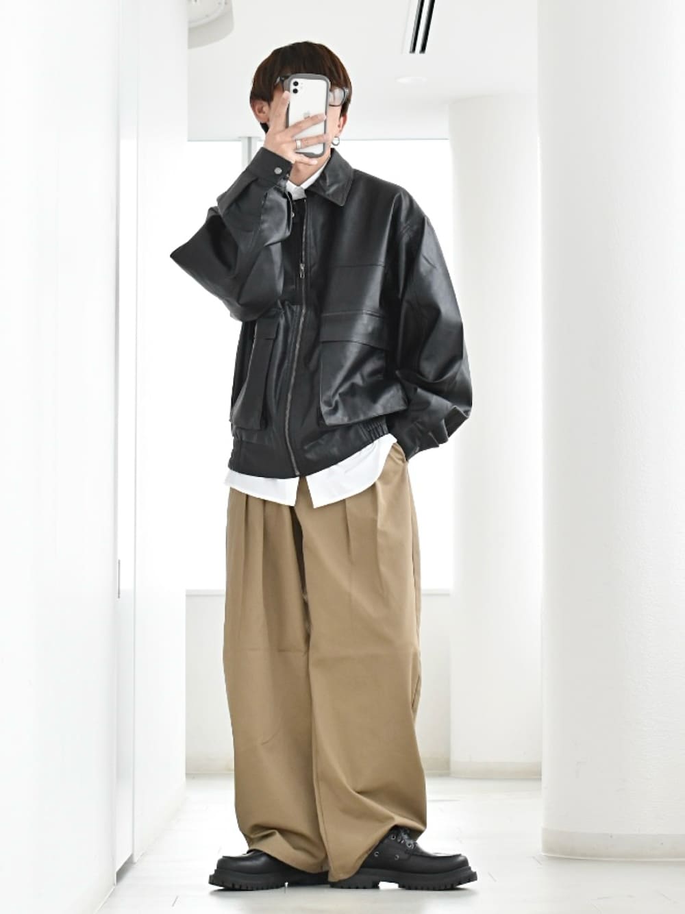 y_Oのブルゾン「2way ヴィンテージライク PU レザー 襟ボア A-2 G-1 ジップアップ ブルゾン レザレットブルゾン/ハリントンジャケット」を使ったコーディネート