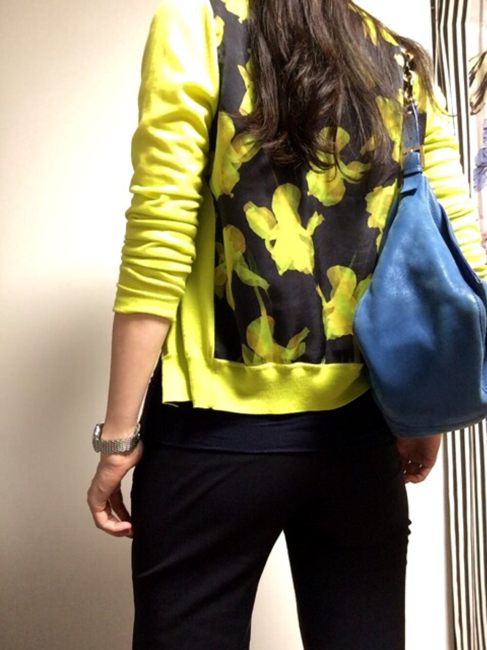 連休明けなのでスーツでしっかり目に… 中のカーデでテンションを上げる作戦 バックプリント見せたくて後ろ向いてます…