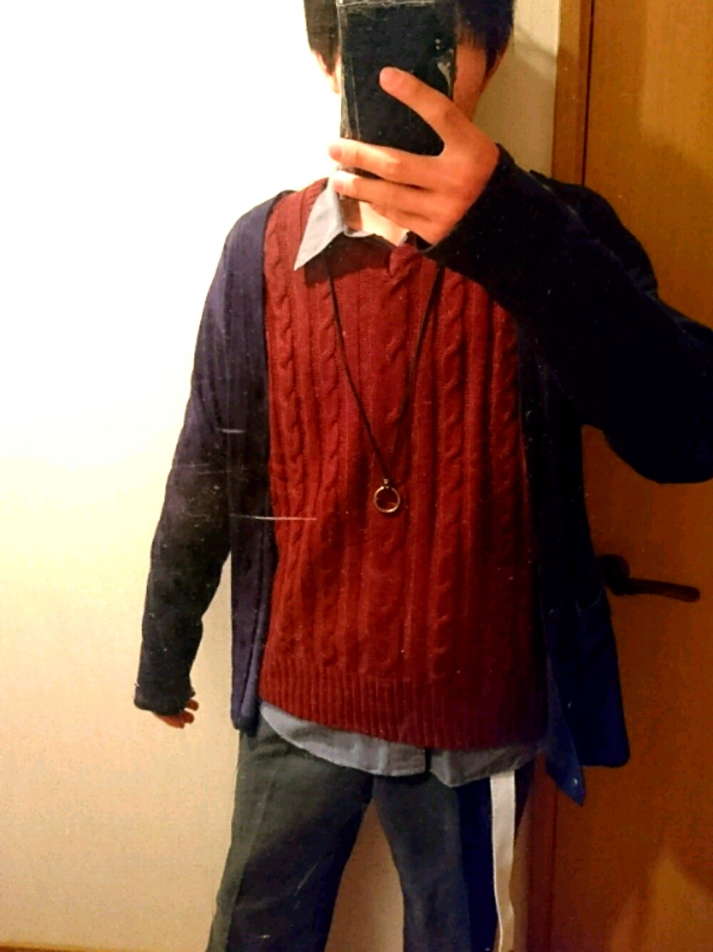 普段はスキニーばっかなので、たまにはスラックスを… セーターの首もとからYシャツが出てるってやつをやってみたかったんです笑 色が多い気もしますが、いつもとは違ったコーデなので気分にも変化があって楽しかったです