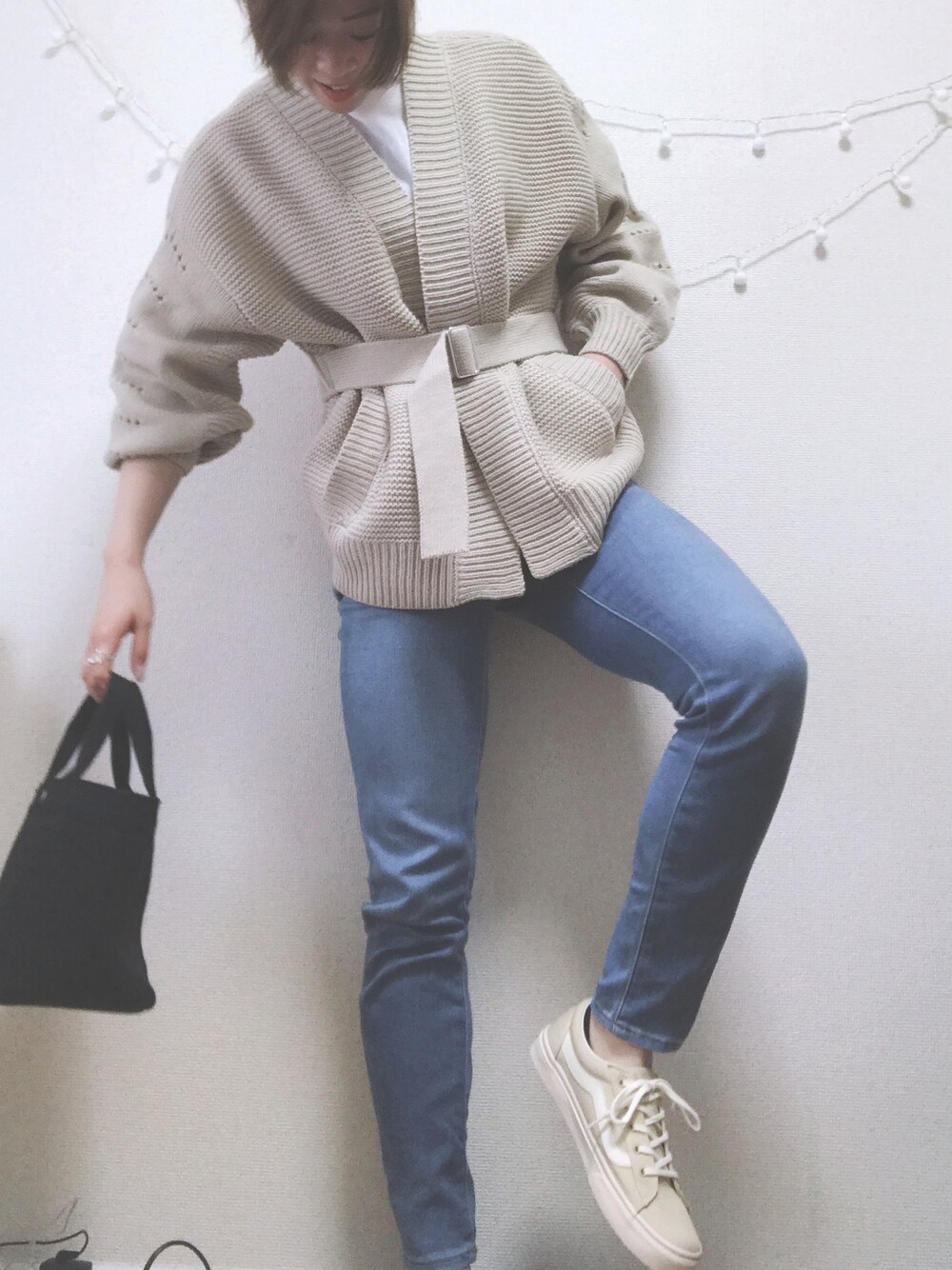 久々☺︎ wear復活! 髪の毛の長さが違う!笑 今日は暖かいのでこれで十分OK🙆♀️ AZULのニットカーディガンめっちゃあったかい⭐︎