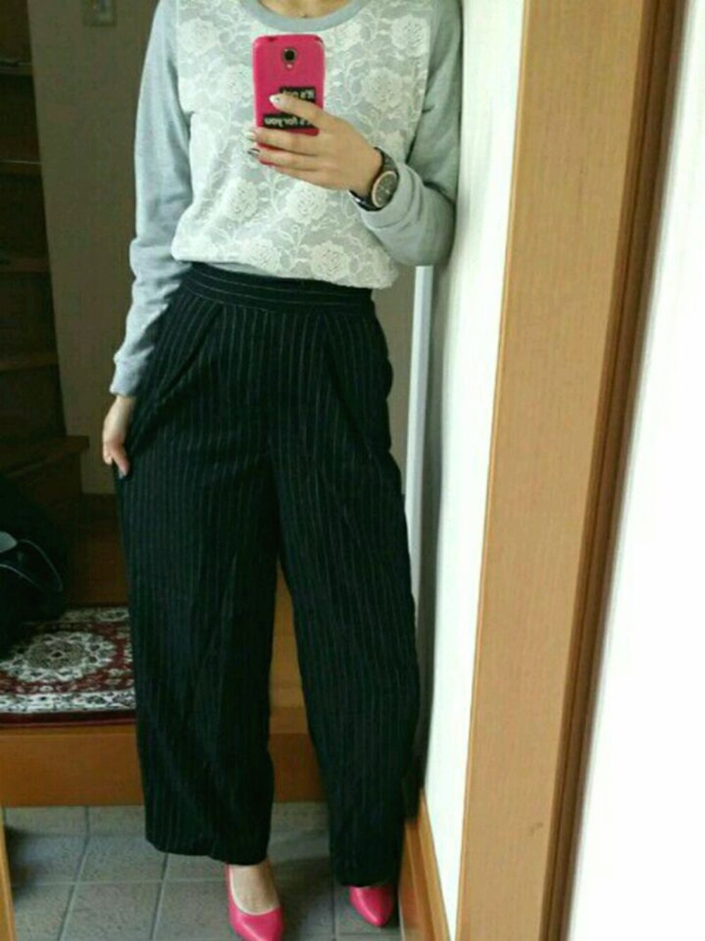 お疲れさまです (*´∀`)♪ ちょっと撮り方の悩み…… ハイウエストコーデを撮っても何故かトップスが目立って綺麗にとれない…… だからスタイル凄く悪く見えるし、洋服のバランスも悪く見える…… どなたか優しく教えてください(涙) トップスはスウェットにレースが付いてるから女子らしく着れる!更にハイウエストに合わせやすいショート丈! パンツはストライプになっていてワイド感が丁度良いです! ポイントにビビットピンクのパンプス♥ こう言う指し色すきだなぁクンクン( ̄∞ ̄) これからも沢山アップしていくので宜しくお願いします(('ェ'o)┓ペコ 又毎回♥やsaveしてくださる方(*´▽`人)アリガトウ♡ございます♡♡ 幅広いジャンルを着ていきたいので楽しみにして頂けると幸いです! 後カバンが乗ってない時は仕事カバンなんです!キュートなカバンだけど中は重たい(涙)