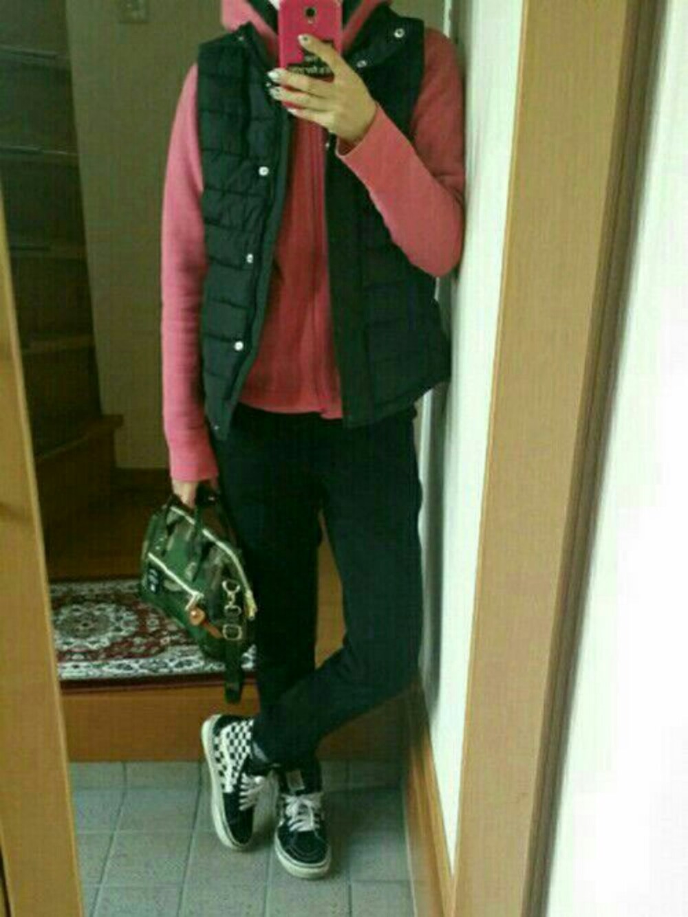 お疲れさまです (*´∀`)♪ いつもいつも(*´▽`人)アリガトウ♡ございます! 初めての方も目を通してくださり(*´▽`人)アリガトウ♡ございます! 今日は地元コーデ♥ AZUL by moussyのスウェットはウエストリブ、紐、ボタン、ポケット、足元にリブが付いていて履き心地もとってもよい!だけど1回着ただけで毛玉…… GAPのダウンベストは先日購入して初めて着たけど軽くて着やすい! カバンは一ヶ月前から買うか迷ってて、やっぱり買いにいった!がま口みたいに広がって2wayで使いやすい! ヒスのパーカーは鉄板です!リバーシブルだけど、ほぼピンクで着ます!数年前のだけど長持ちしてくれてる♥