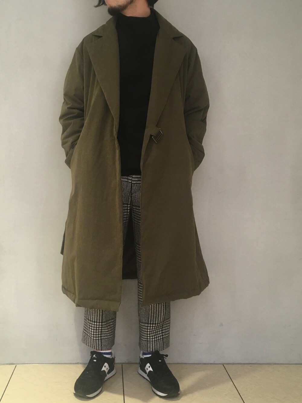 ・ ピーチスキン中綿タイロッケンコート。 肌触り・防寒性・軽さ・色味 どれをとっても最高です。 ・ #publictokyo #tokyobase #新宿ルミネ2 #タイロッケンコート #ピーチスキンコート #ミラノリブニット #チェックパンツ #ootd #f4f