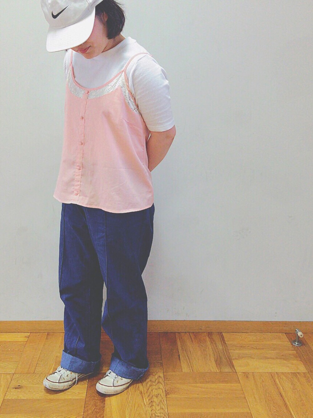 wear デビュー してみました ◎ 今日 は らくちん スタイル〜 デニムもトップスもゆる〜く、 雨で髪の毛がモワモワなるので、 古着屋で 見つけた NIKE の キャップ。 これからもゆる〜く、 更新させてもらいます ⁂