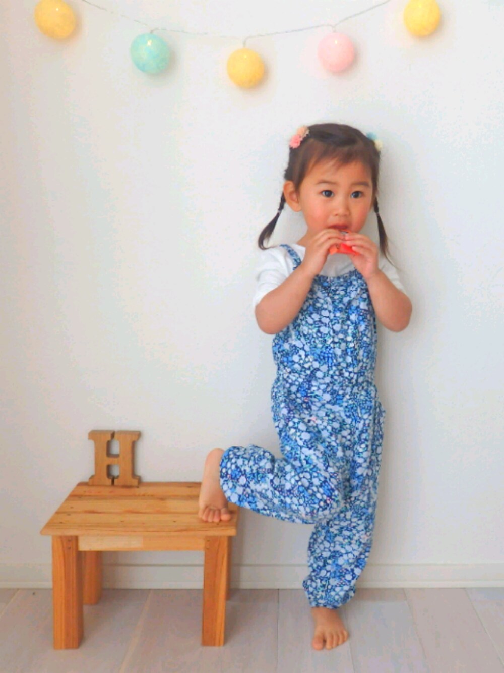 花柄サロペットに、 お花のヘアアクセ🌺 夏は、サロペット一枚になるのかなw