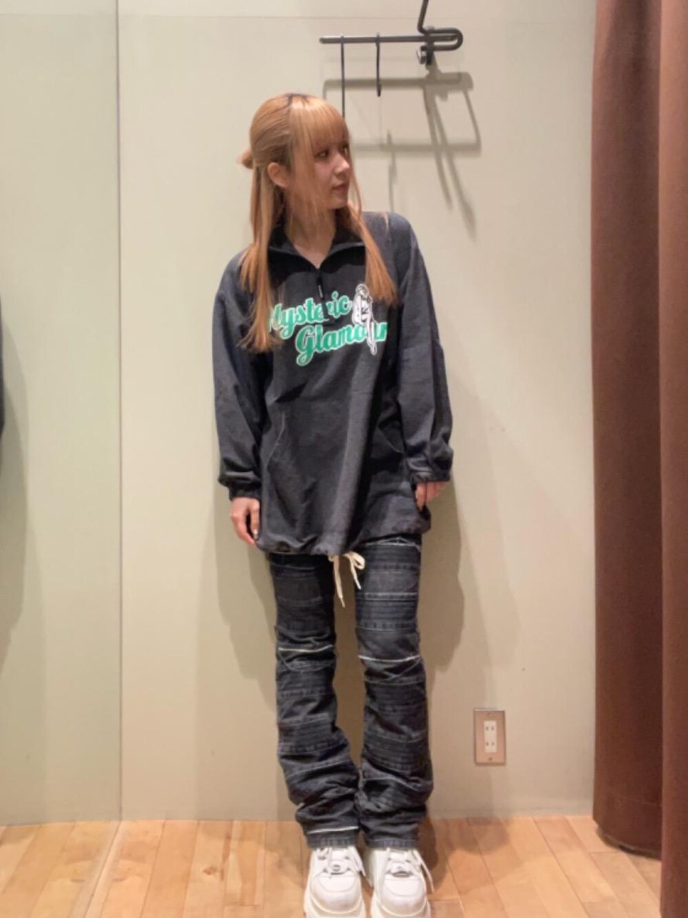ヵのデニムパンツ「スクラッチフレアデニムパンツ」を使ったコーディネート