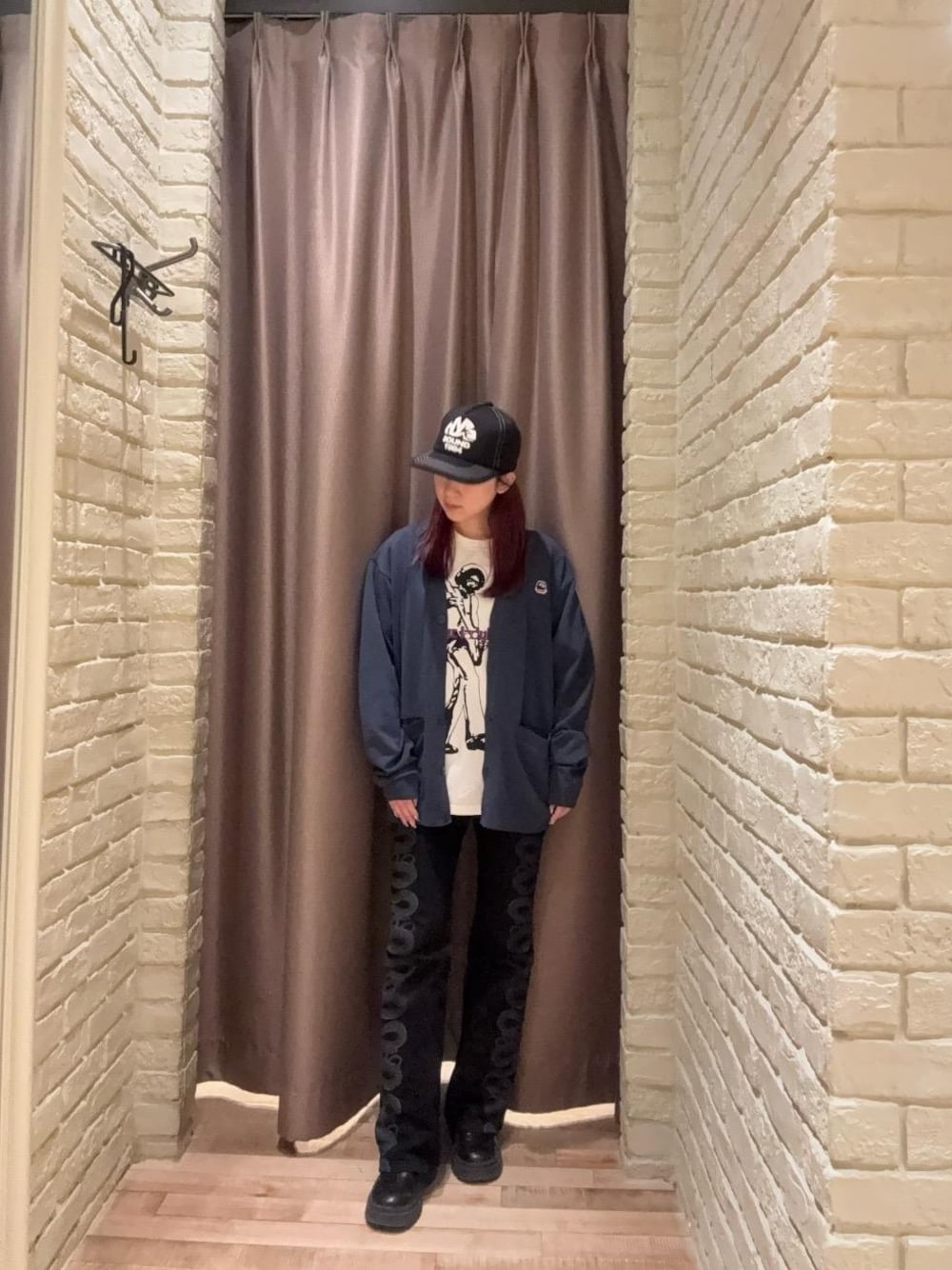 ヵ(HYSTERIC GLAMOUR札幌ステラプレイス店)のデニムパンツ「SNAKE LOOP柄デニムフレアパンツ」を使ったコーディネート