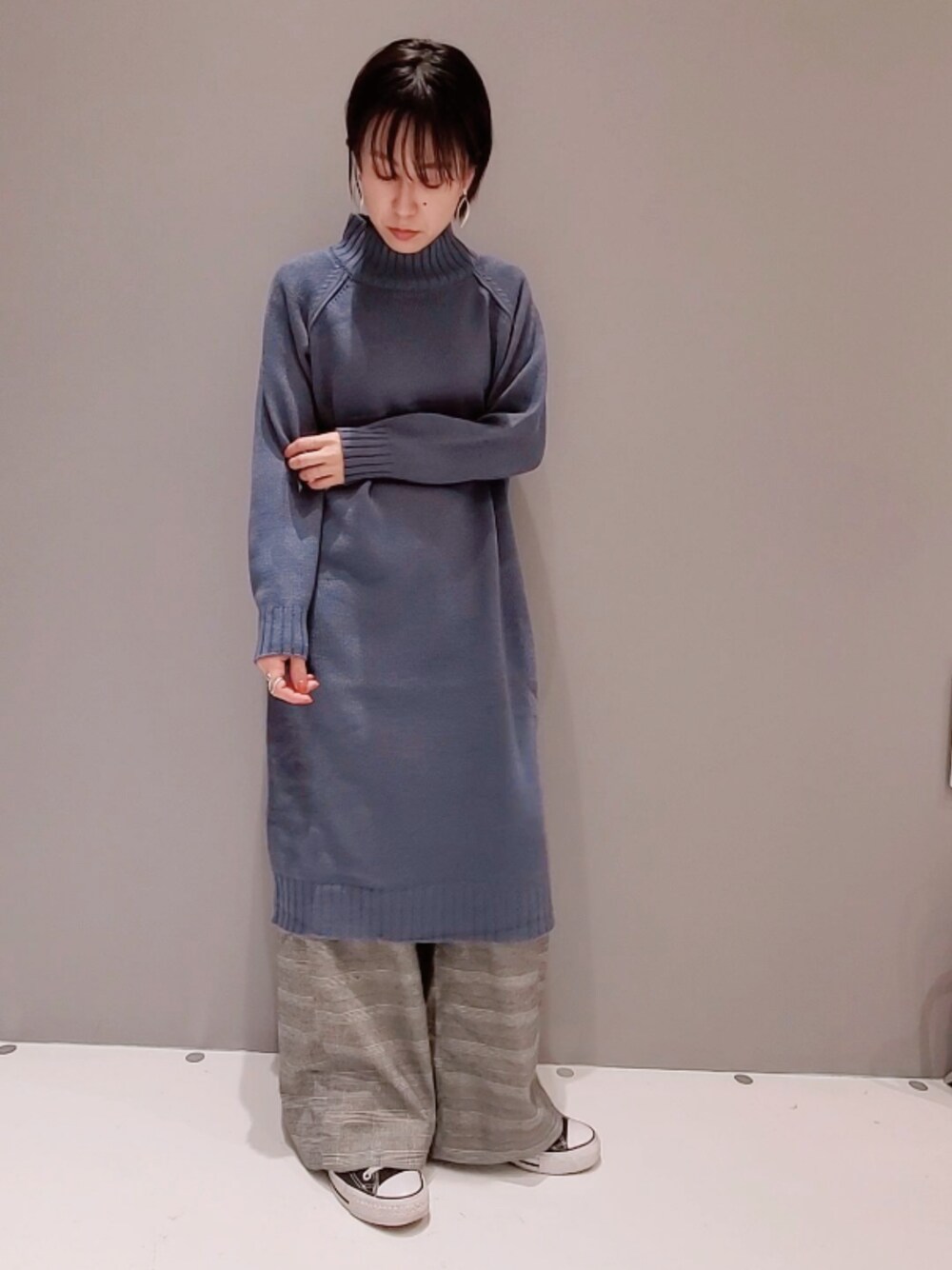 yoshiのワンピース「ハイネックラグランニットワンピース●*」を使ったコーディネート