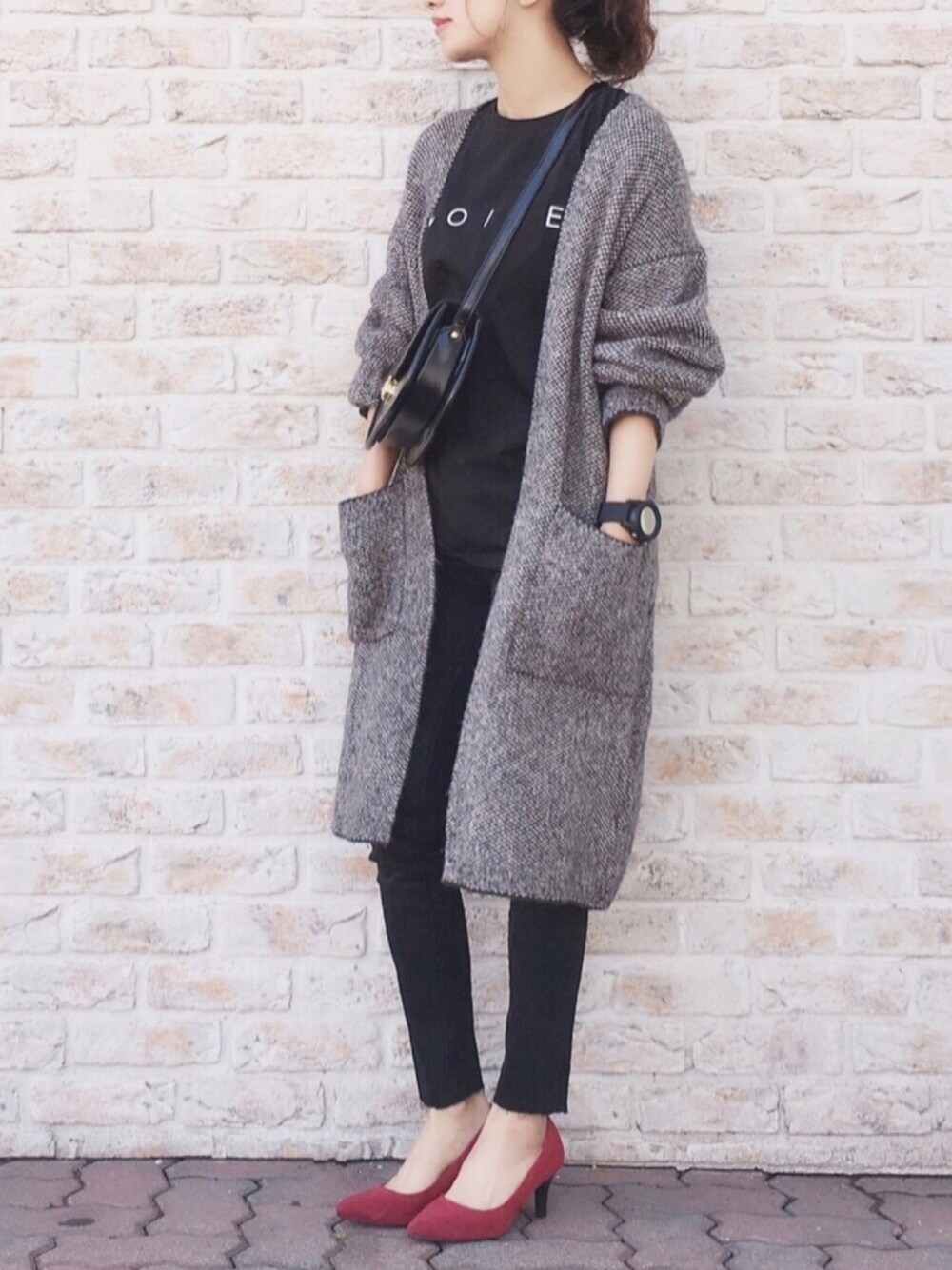 UNIQLOツイードニットコートの着回しです(^ ^) ニットが着たくなる寒さですね。 ニットコート/S Tシャツ/36 スキニー/22 シューズ/34 インスタ/yoahiru.w