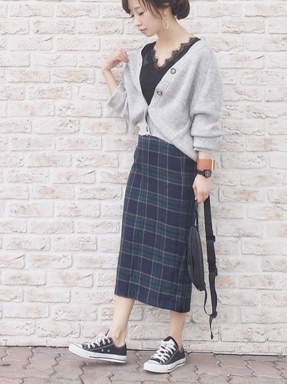 まだまだ暑いけど先物☺︎☆ 久しぶりの上下GU✨ コクーンカーディガン Lサイズでも良かったかも☺︎ スカートも可愛い♡ インナー/FREE カーディガン/M スカート/S シューズ/22.5 インスタ/yoahiru.w