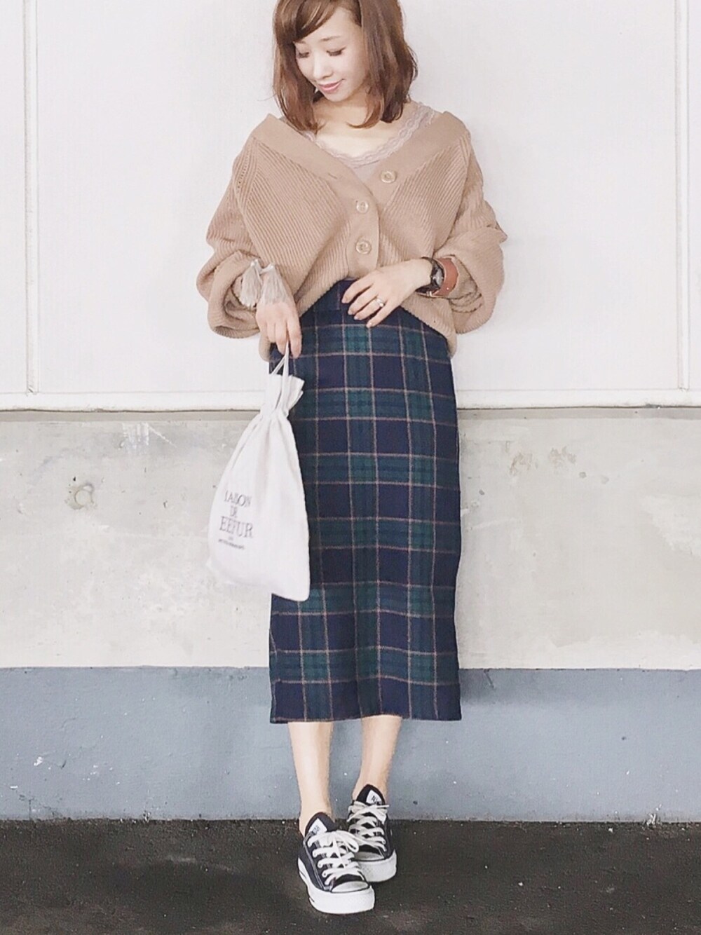 カーディガンの着回しです☺︎♡ GUタイトスカートもやっぱり可愛い。 カーディガン/FREE インナー/FREE スカート/S シューズ/22.5 インスタ/yoahiru.w