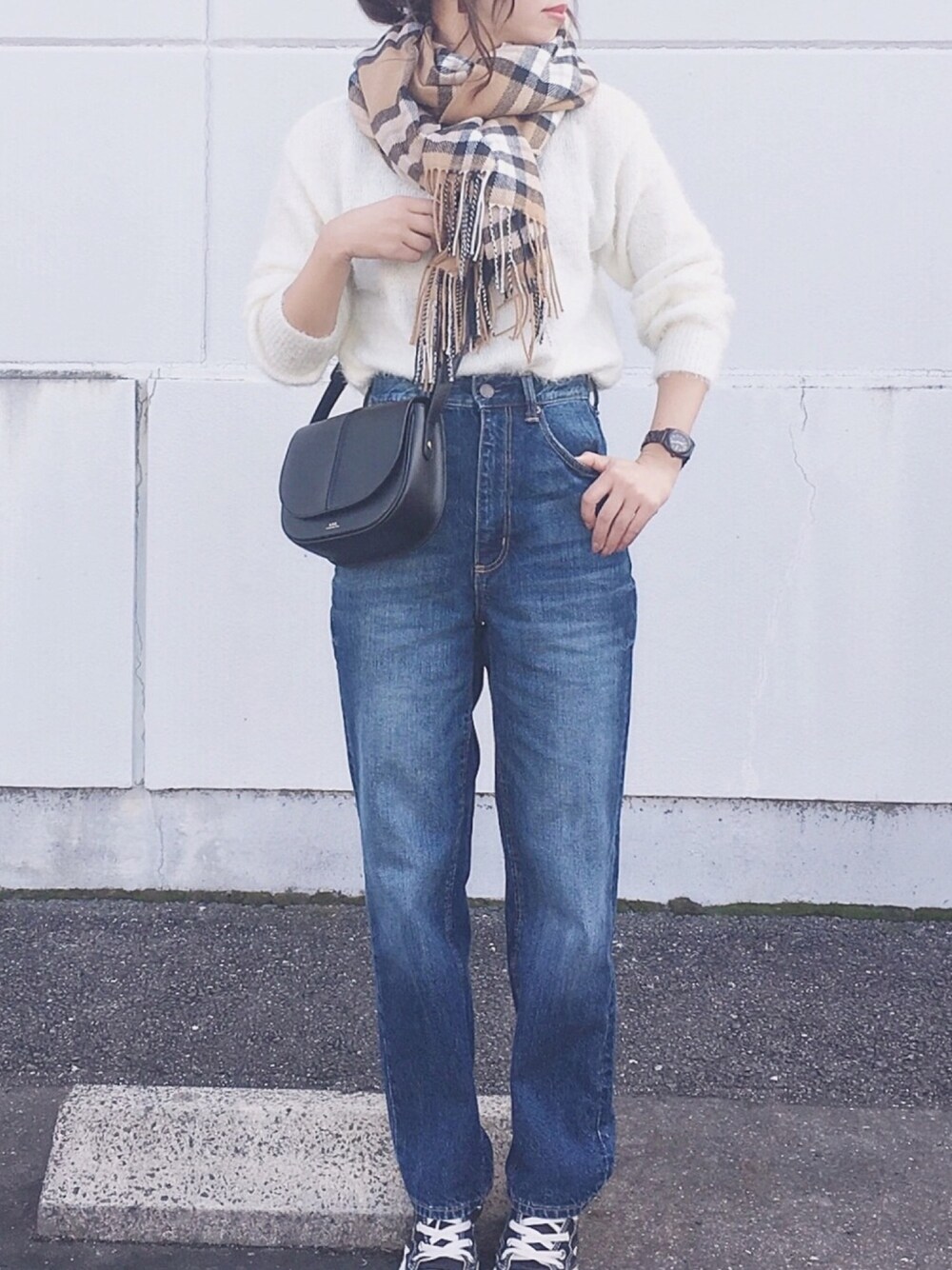 GUのフェザーヤーンセーター ふわふわで気持ちいい☺︎♡ デニムもGU✨ 久々に穿いた♡シルエット完璧☺︎✨ ニット/M デニム/S シューズ/22.5 インスタ/yoahiru.w PR