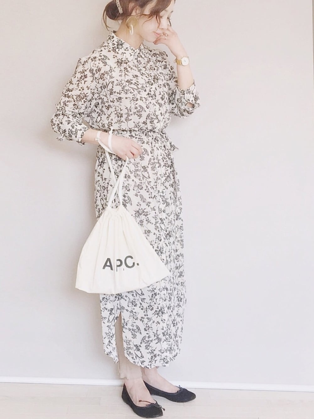 titivateの花柄ワンピース シフォン素材でふんわり✨ ウエスト部分にギャザーが入っていて 羽織りにしても綺麗な一枚です☺︎♡ ワンピース/M レギンス/S シューズ/35 インスタ/yoahiru.w
