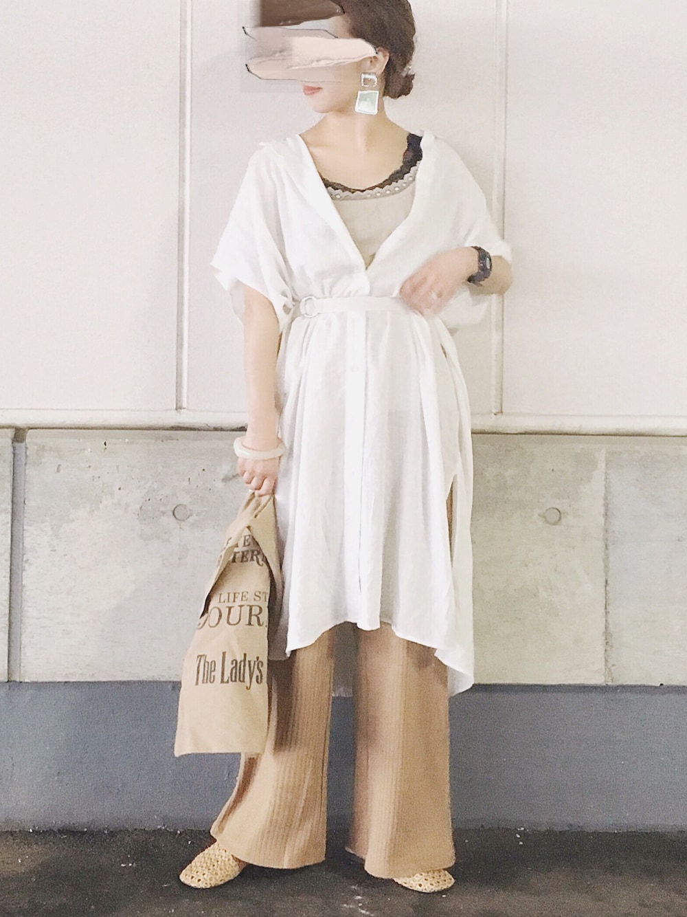 陽のシャツ/ブラウス「リネンブレンドロングシャツ(半袖)」を使ったコーディネート