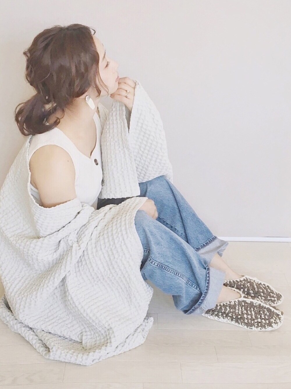 オーガニックコットンの大判タオルケット ワッフルで肌触りがすごく心地よい☺︎✨ 我が家ではソファに置いてお腹や肩、ひざに掛けています✨ ルームシューズもコットンです♡ 極上のリラックスタイム☺︎ 本日ZOZOTOWNにて¥1500クーポンが発行されています✨ インテリア雑貨が素敵すぎるのでぜひチェックしてください☺︎♡ タオルケット/M タンクトップ/M デニム/23 ルームシューズ/S インスタ/yoahiru.w
