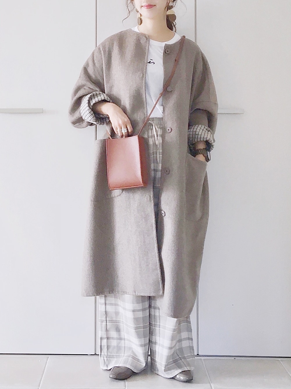 ベージュワントーンにブラウンのアクセント☺︎♡ Tシャツ/3 コート/FREE パンツ/S シューズ/35 Instagram/yoahiru.w