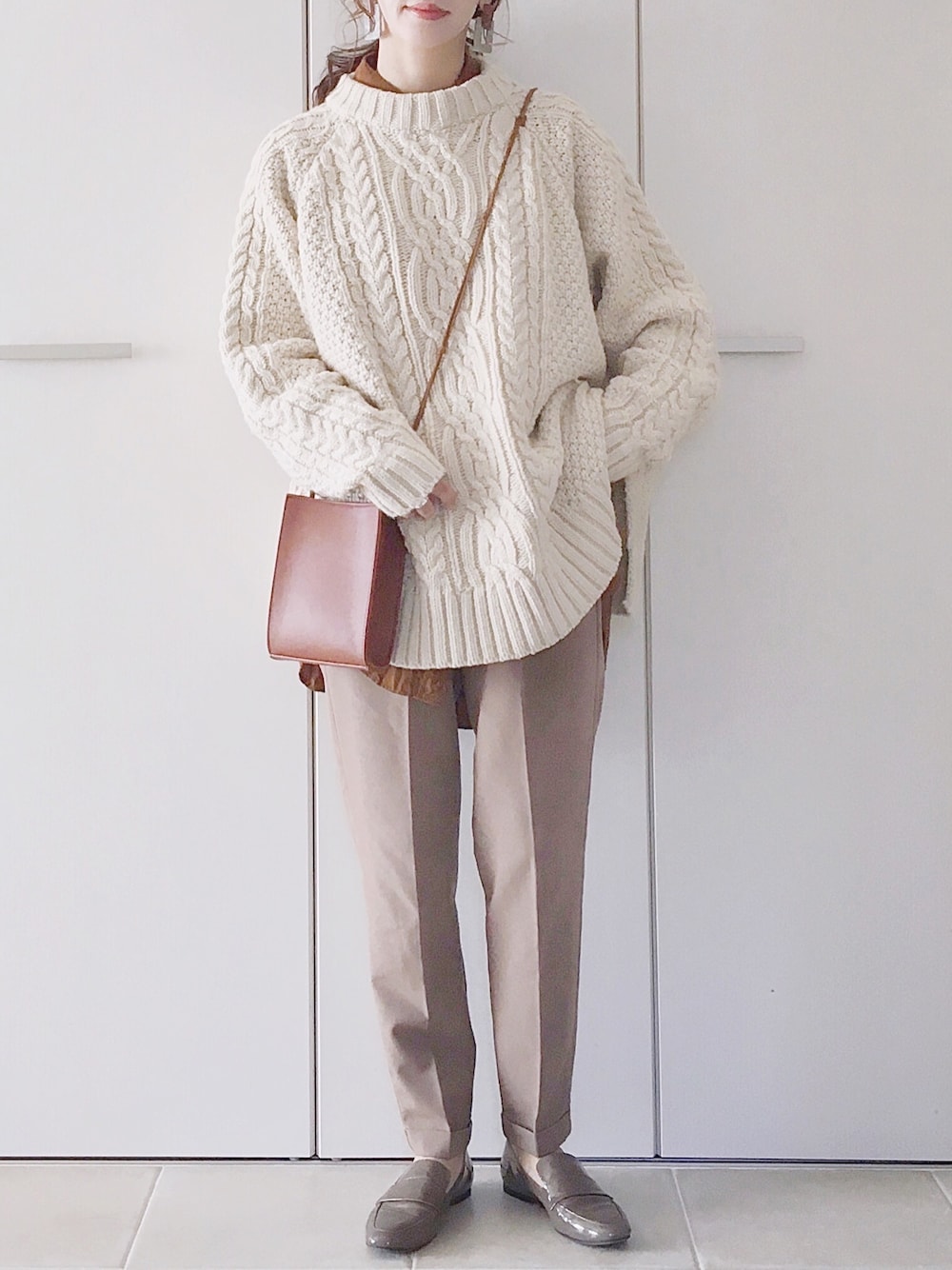大好きなニットでブラウンコーデ✨ ニット/FREE シャツ/FREE パンツ/34 シューズ/35 Instagram/yoahiru.w