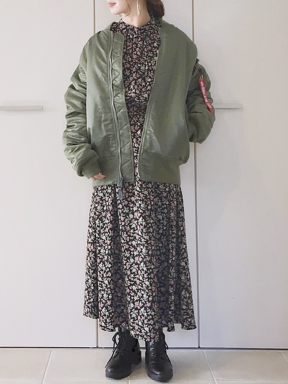 定番MA-1は 女子らしいアイテムで合わせるのが好き☺︎♫ MA-1/メンズXL ワンピース/M シューズ/S Instagram/yoahiru.w