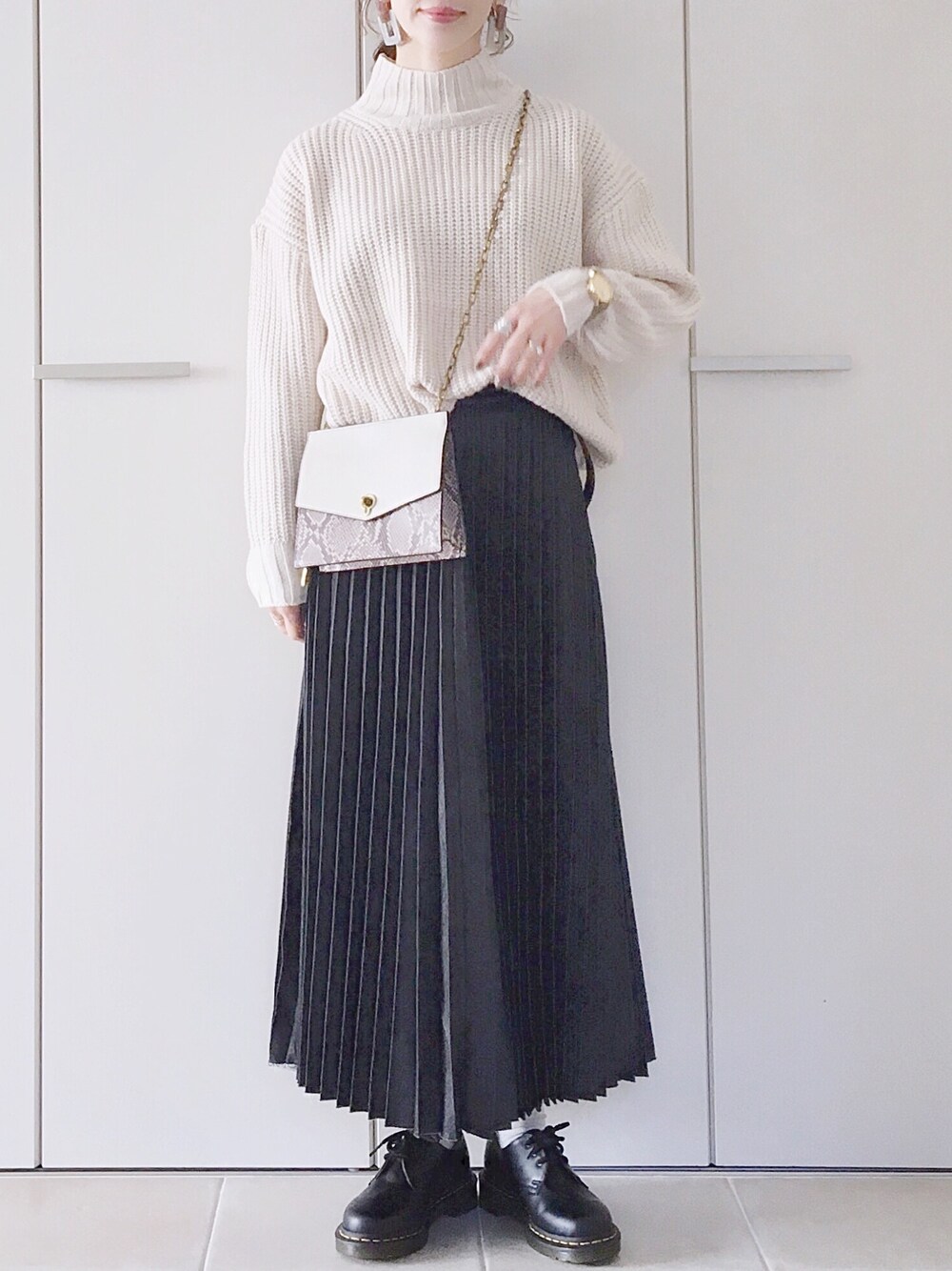 Ne-netのプリーツスカート 着回しです♡ シンプルニットと✨ ニット/M スカート/2 シューズ/3 Instagram/yoahiru.w