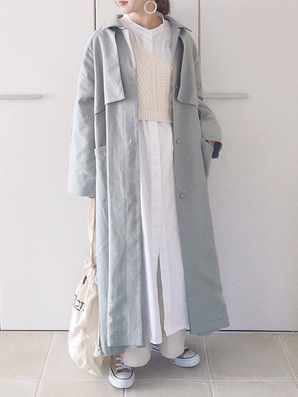 陽のステンカラーコート「コットンリネンボリュームコート」を使ったコーディネート