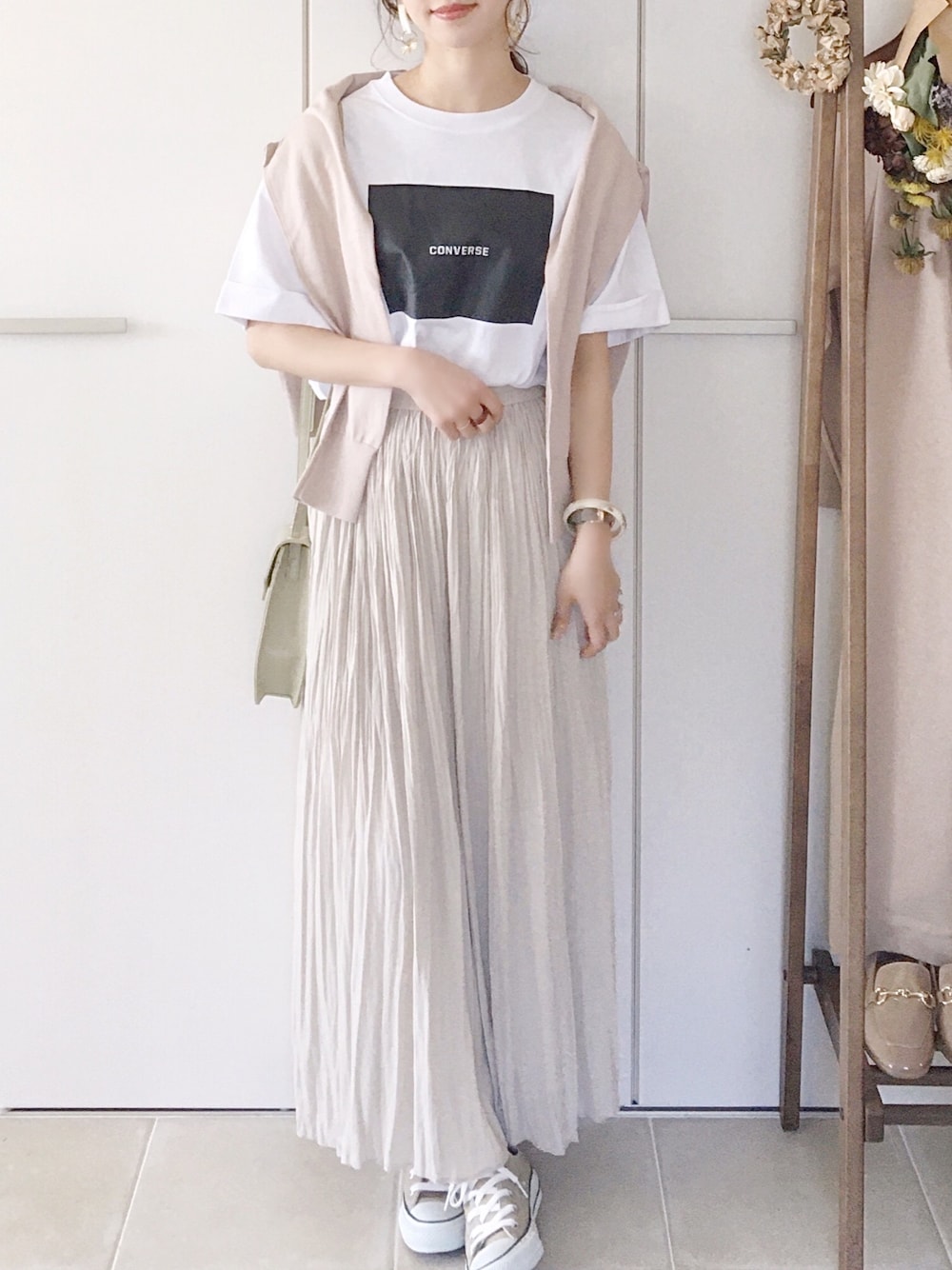 Chaco closet別注のコンバースT☺︎✨ UNIQLO新作のワッシャーパンツで 大人カジュアル🥰♫ Tシャツ/FREE パンツ/S カーディガン/XL シューズ/22.5 Instagram/yoahiru.w