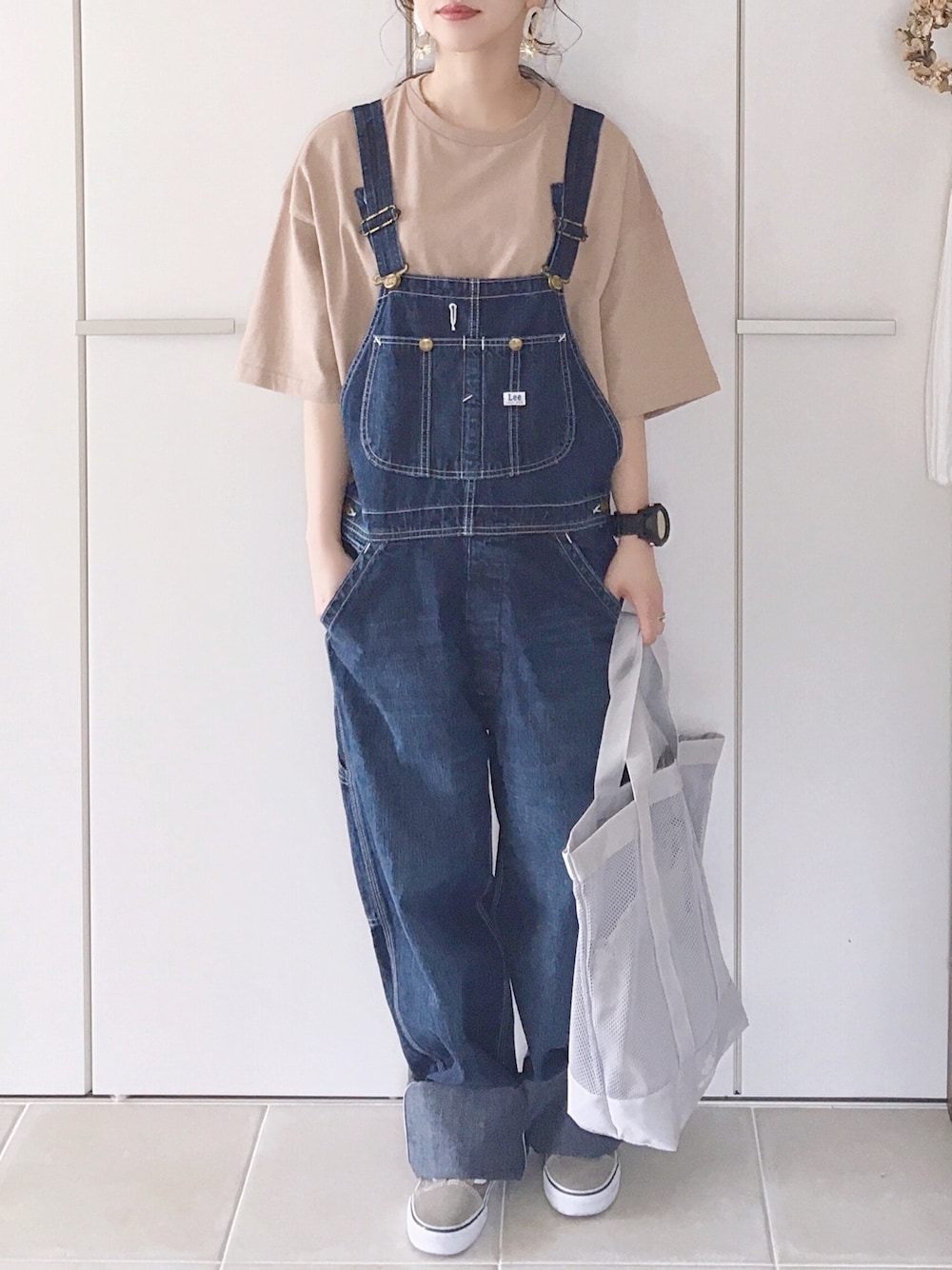 LeeのTシャツ、ゆるサイズで可愛い🥰 160を着用しています♫ Tシャツ/160 オーバーオール/メンズXS シューズ/22.5 Instagram/yoahiru.w
