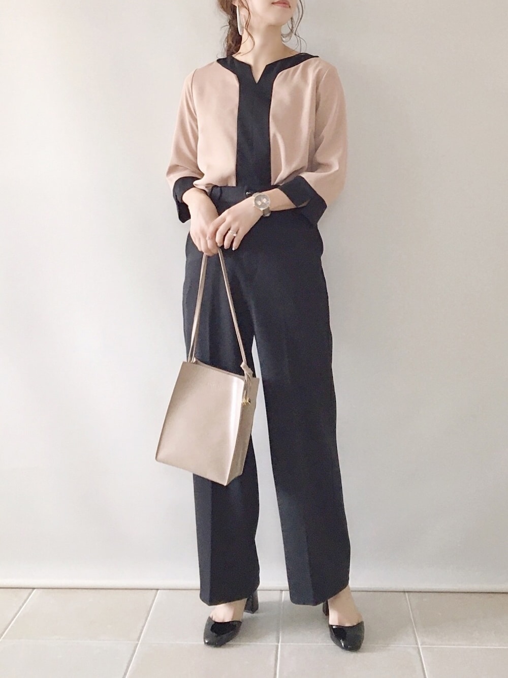 TONALのバイカラーブラウス 大人っぽくて素敵…!✨ 通勤やオフィスにもおすすめのアイテム☺︎♫ 本日ZOZOTOWNにて¥2000クーポンが発行されています🥰✨ トップス/38 パンツ/S シューズ/S Instagram/yoahiru.w