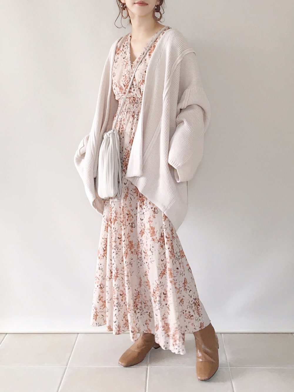 陽のカーディガン/ボレロ「ローゲージ編みカーディガン」を使ったコーディネート