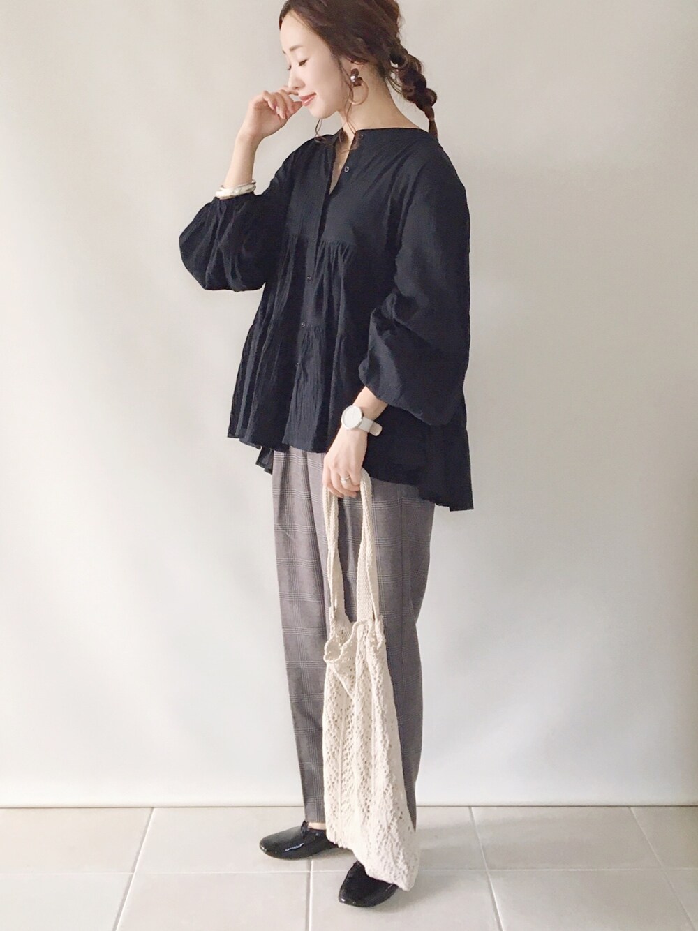 Crispの人気ティアードブラウス✨ 秋に着回ししやすい黒も可愛い。 本日ZOZOTOWNにて¥1000クーポンが発行されています✨ ブラウス/FREE パンツ/S シューズ/36 Instagram/yoahiru.w