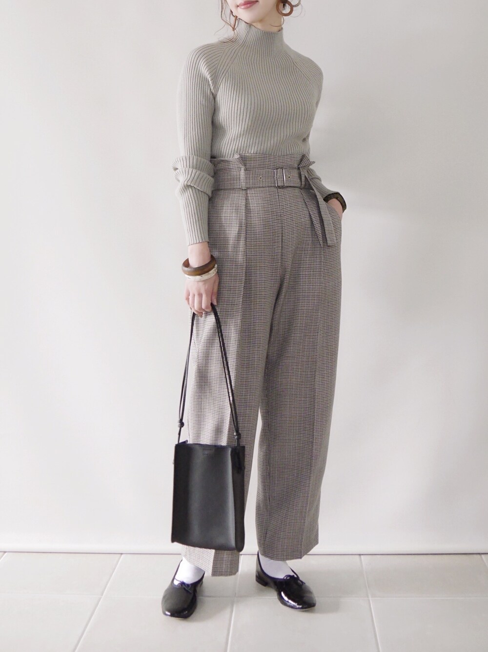 着用コーデ:393件GU チェックパンツと シンプルリブニット✨ ニット/FREE パンツ/S シューズ/36 Instagram/yoahiru.w