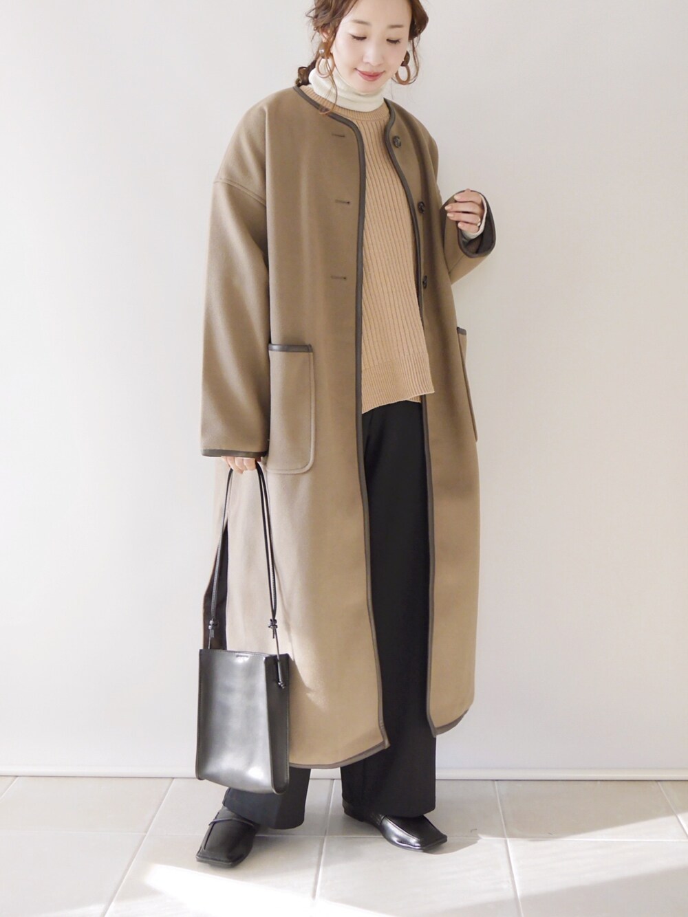 AMERICAN HOLIC by 陽のニットに パイピングコートを羽織りました☺️ インナー/M ニット/M コート/M パンツ/S シューズ/22.5 Instagram/yoahiru.w