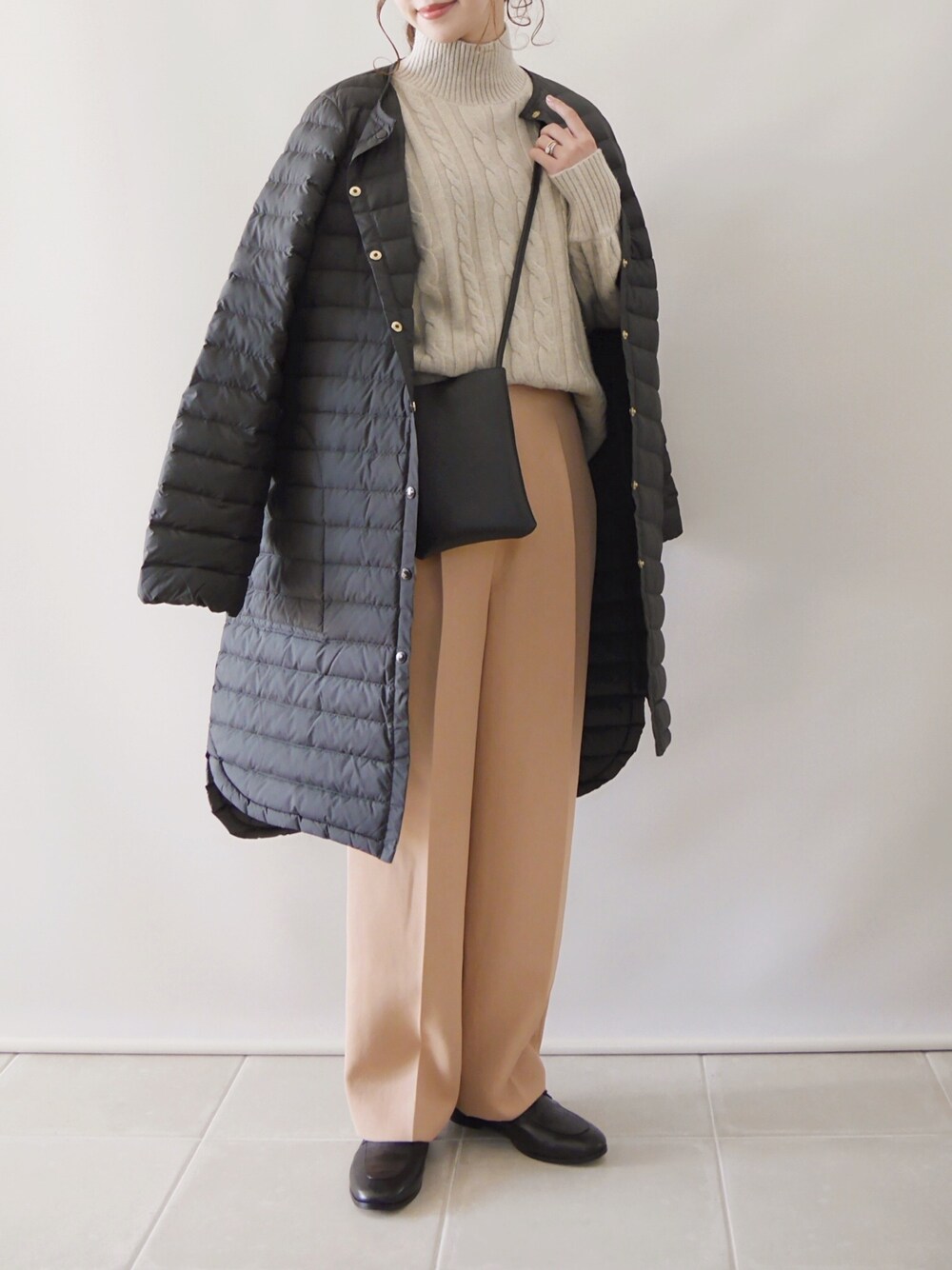陽のニット/セーター「マシンウォッシャブルケーブルハイネックニット/モックネック」を使ったコーディネート