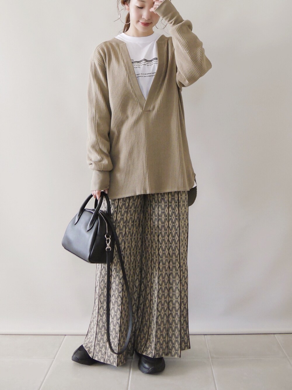 misatoさんプロデュース y/mのトップス✨ 深めVネックおしゃれ☺︎ トップス/FREE ロンT/FREE パンツ/S シューズ/23 Instagram/yoahiru.w
