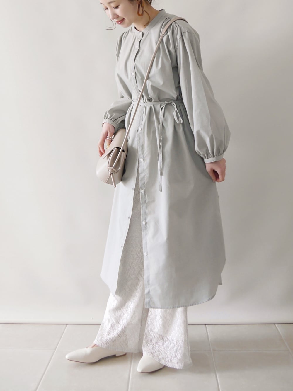 しまむら × てらさんプロデュースの terawear emuコーデ♡♡ きれい色のシャツワンピ レースパンツ ショルダーバッグ 全部お気に入り🥰 ワンピース/M パンツ/M シューズ/22.5 Instagram/yoahiru.w