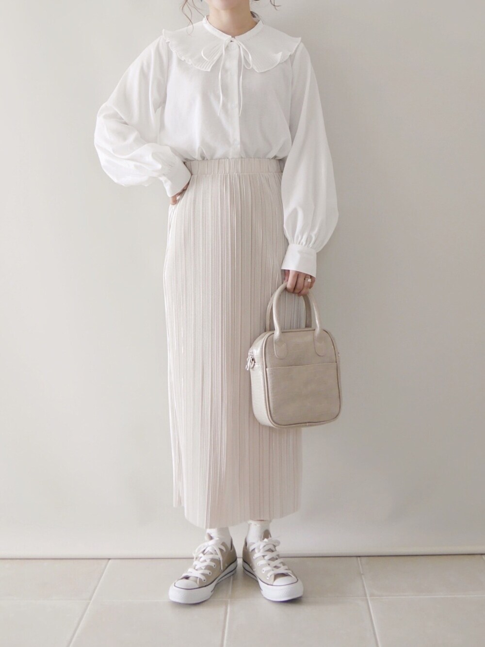 GU新作のビッグカラーブラウス♡ ブラウス/M スカート/S シューズ/22.5 Instagram/yoahiru.w