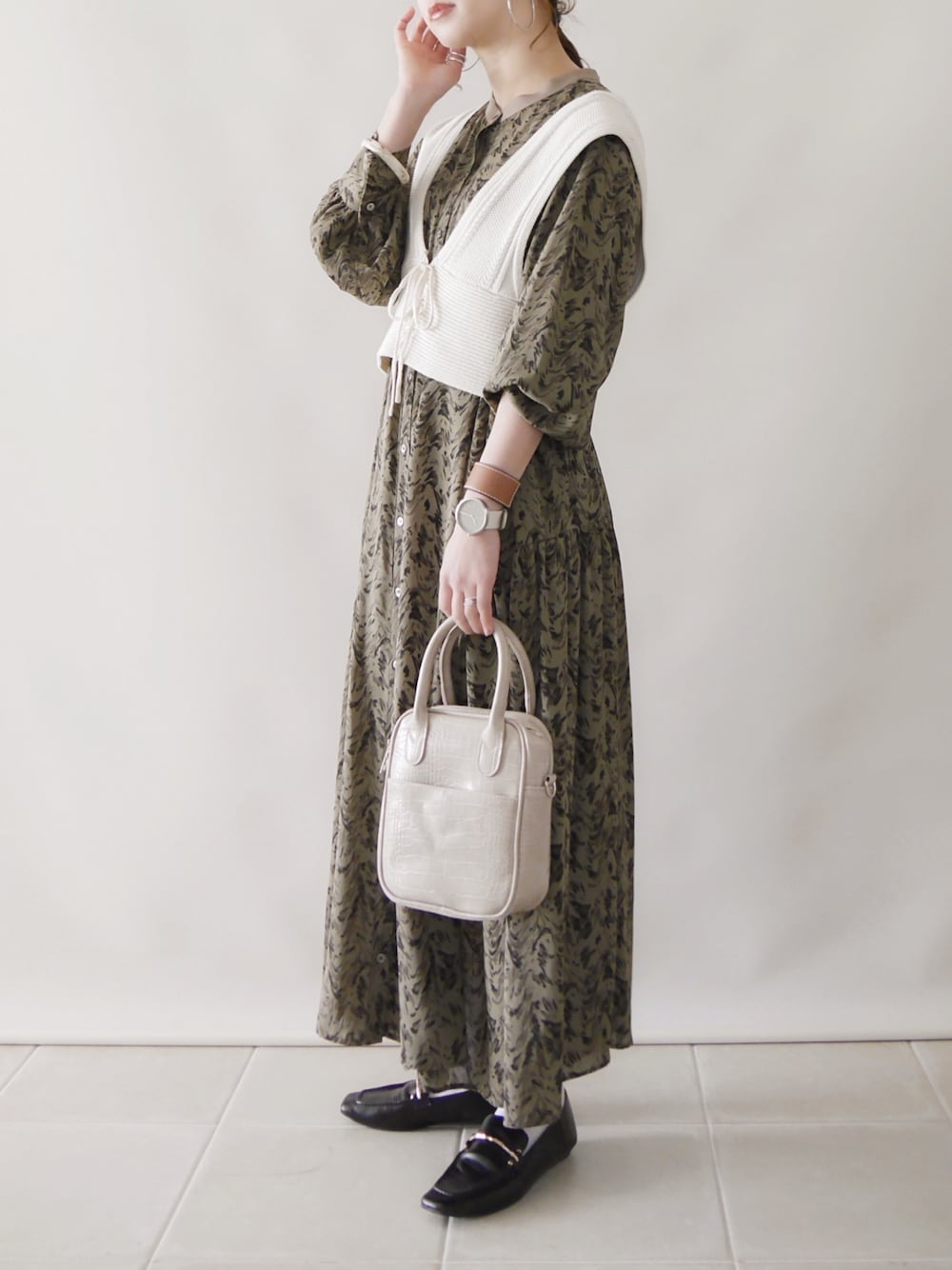 陽のシャツワンピース「〈ペチコート付き〉アシメティアードワンピース」を使ったコーディネート