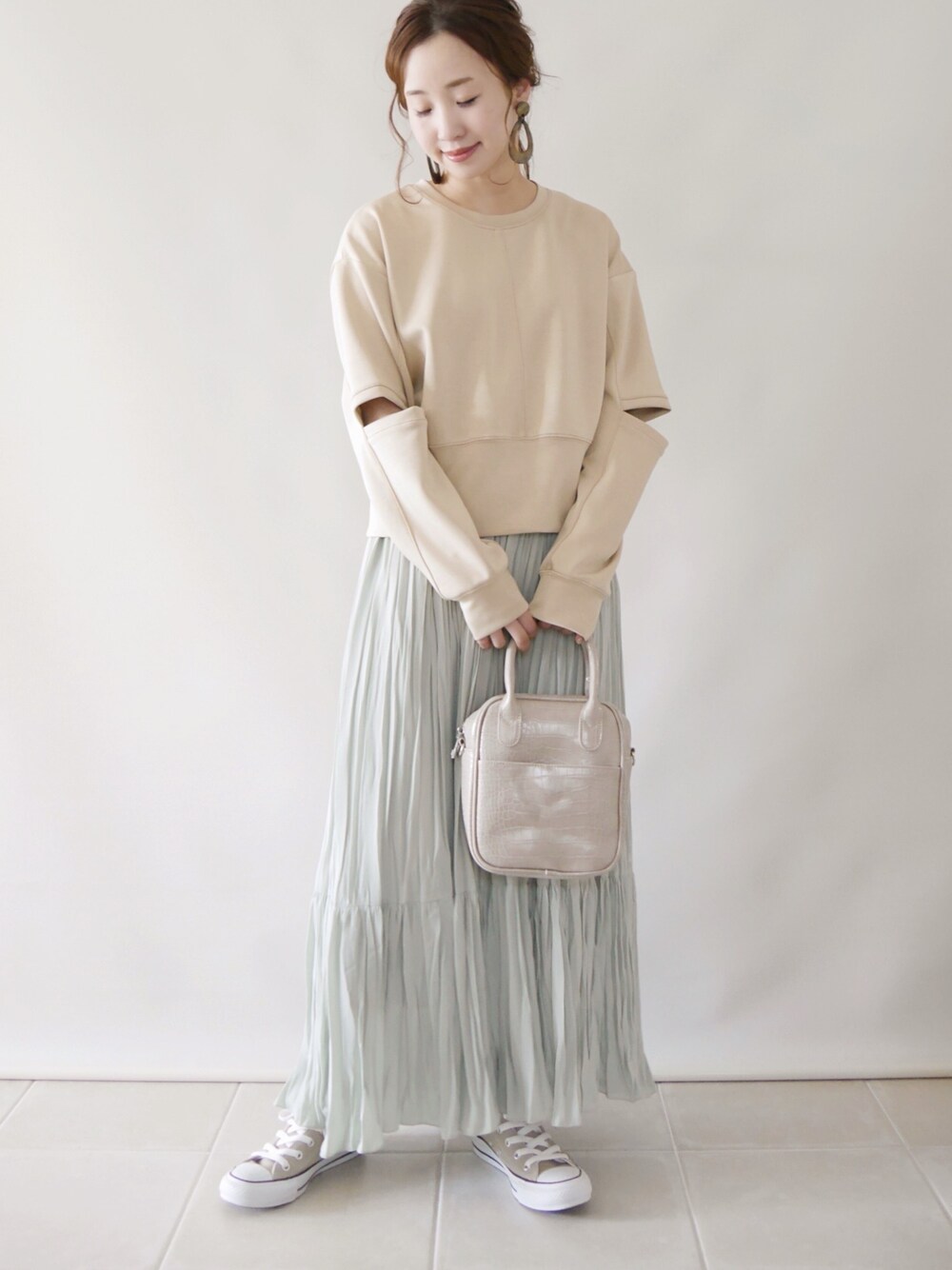 rectangleのエルボースリットプルオーバー✨ 袖のスリットが可愛い一枚♡ 本日ZOZOTOWNにて¥1000クーポンが発行されています🥰 トップス/M スカート/M シューズ/22.5 Instagram/yoahiru.w