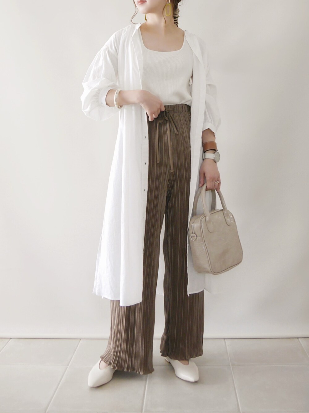 ほぼ全身GUコーデ🥰 今年もリネンブレンドのシャツワンピが 活躍してくれそうです✨ ワンピース/M タンクトップ/L パンツ/S シューズ/22.5 Instagram/yoahiru.w