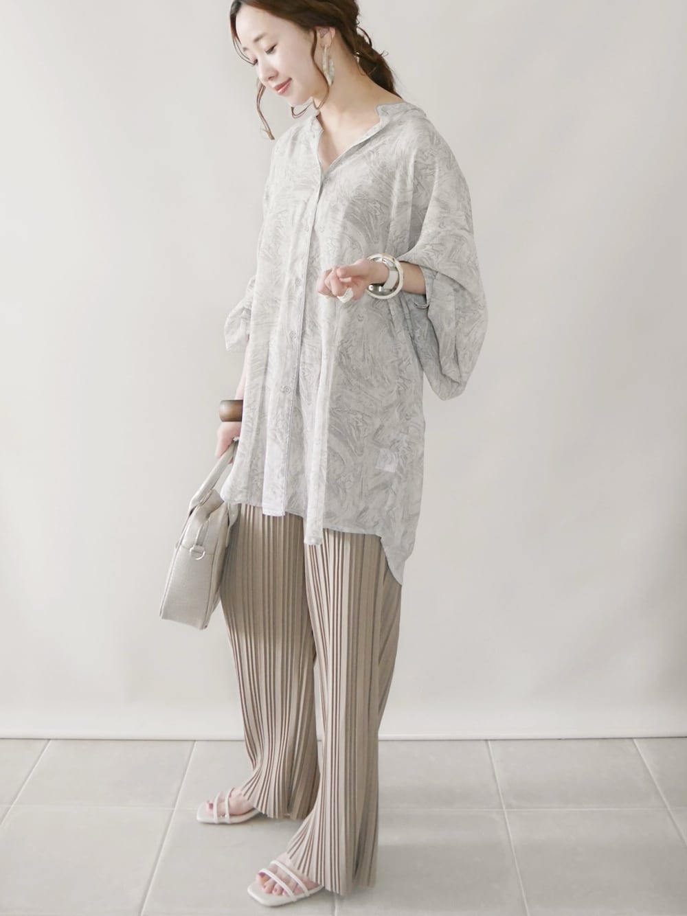 陽のシャツ/ブラウス「マーブル柄スタンドカラーパイピングシャツ」を使ったコーディネート