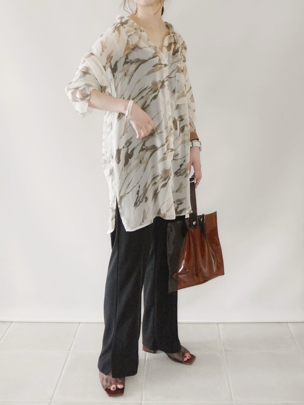 陽のシャツ/ブラウス「シャイニーシアーシャツ」を使ったコーディネート