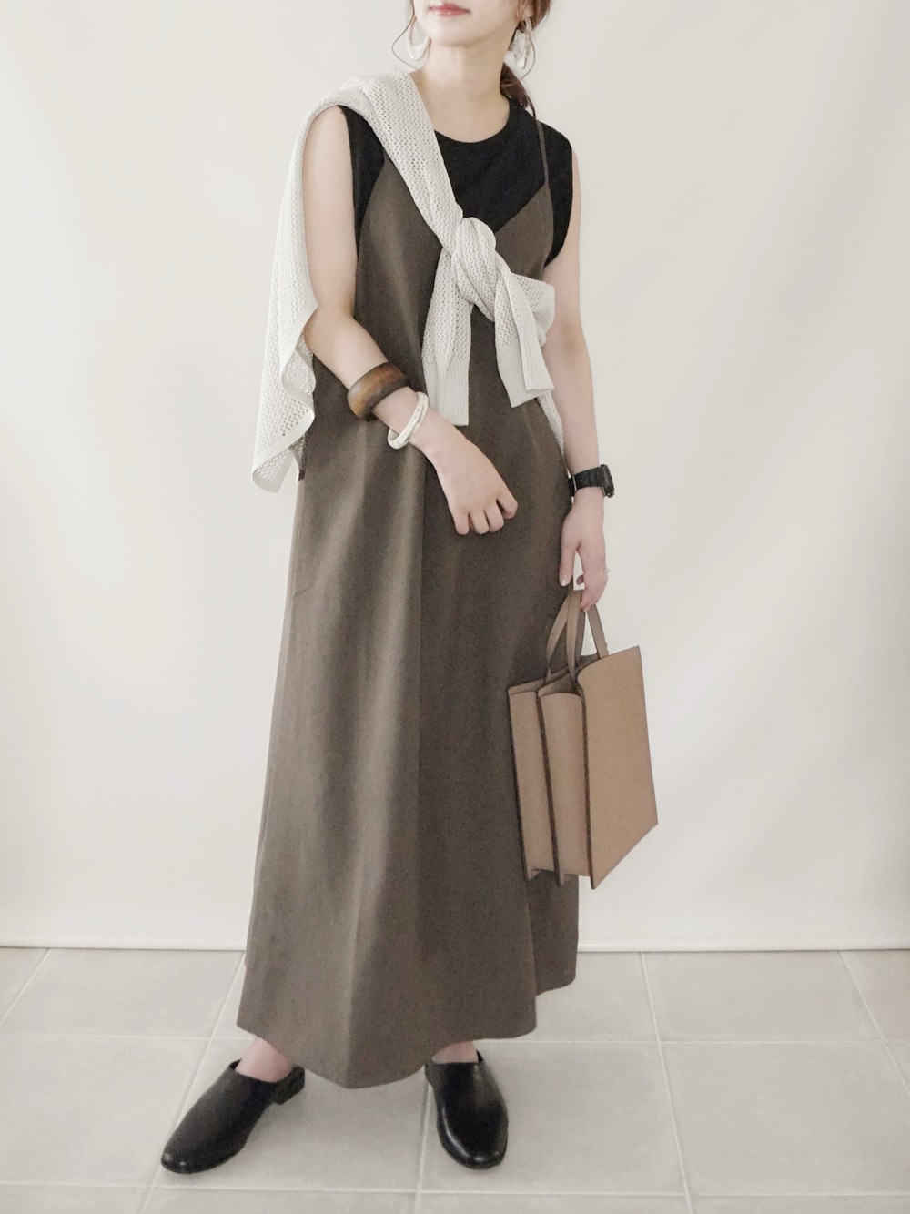 天気の良い日は秋ノースリコーデが良い🥰 ワンピース/M トップス/L ニット/XL シューズ/S Instagram/yoahiru.w