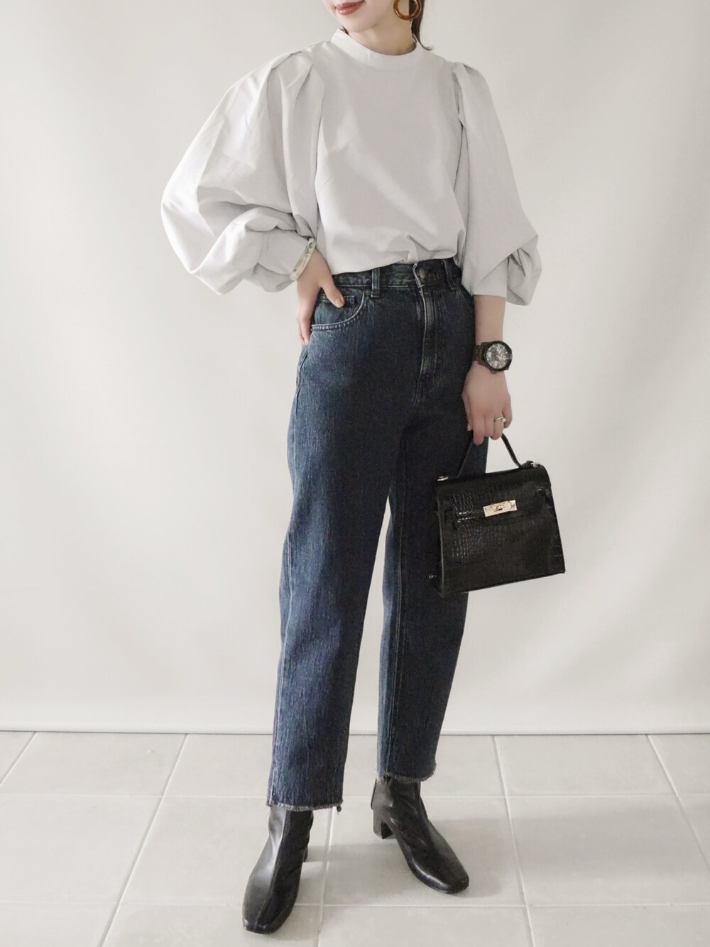 Classical Elfのバックリボンブラウス♡ ボリュームショルダーでシルエットも可愛い一枚✨ 本日¥2499です♡ デニムで甘くなりすぎないコーデ☺️ バッグもブーツも お気に入りのプチプラです♡ ブラウス/M デニム/S シューズ/22.5 Instagram/yoahiru.w