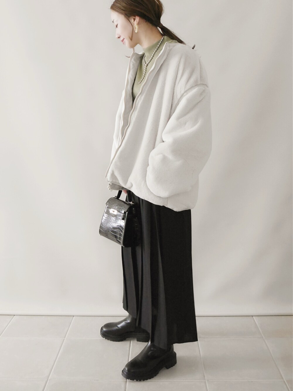 陽のブルゾン「その日の気分で楽しむ。ファー×ウェーブキルトリバーシブルブルゾン」を使ったコーディネート