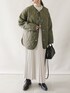 陽のノーカラーコート「WEGO/ノーカラーキルティングミドルコート」を使ったコーディネート