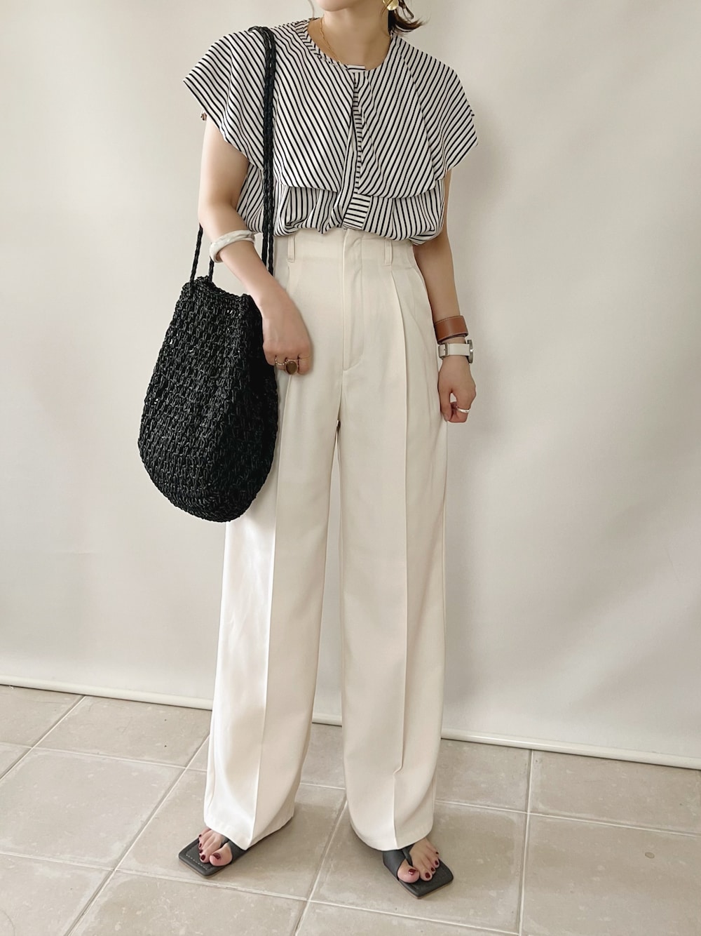 陽のシャツ/ブラウス「2WAYストライプフレンチスリーブブラウス」を使ったコーディネート