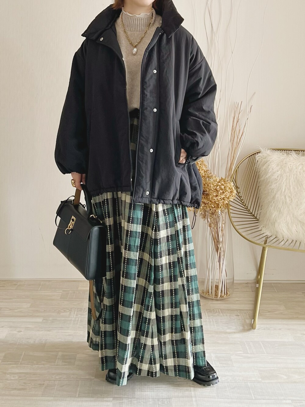 SHIPSのスカート一年中穿ける♡ お気に入り✨ tiptopのダウンも軽くてあったかいです𖧷 ニット/FREE アウター/FREE スカート/36 シューズ/M Instagram/yoahiru.w
