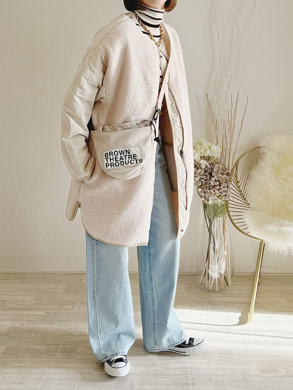 SHOO•LA•RUEのボアコート、 リバーシブルで着られます♡ ボア側もキルティング側も可愛くてとってもあたたかいです✨ コート/02 ニット/XL デニム/S シューズ/22.5 Instagram/yoahiru.w