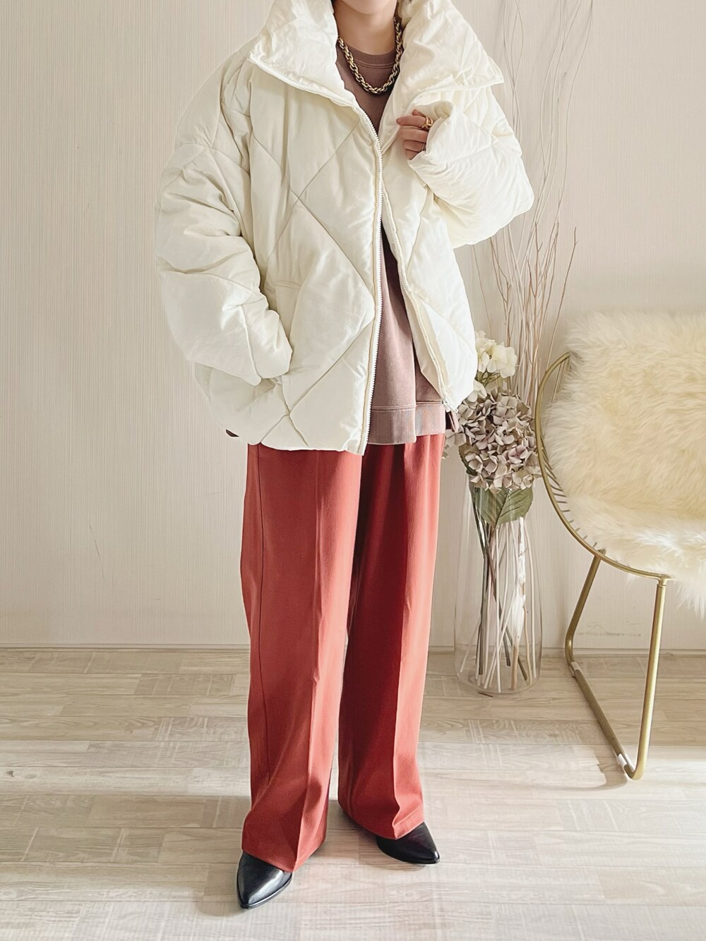 Re:EDITコーデ✨ ダイヤキルトのジャケット可愛いです✨ ジャケット/M トップス/L パンツ/M Instagram/yoahiru.w