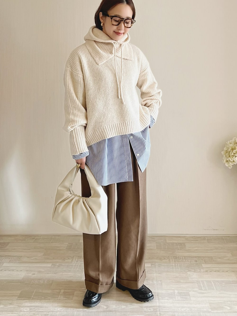 KBFのバラクラバセットのニットが可愛いです♡ ニットと同素材でお洒落見え✨ 一枚で着るのも可愛いです𖧷 本日タイムセール&¥1500クーポンでお得です✨ ニット/FREE シャツ/FREE パンツ/S シューズ/M Instagram/yoahiru.w
